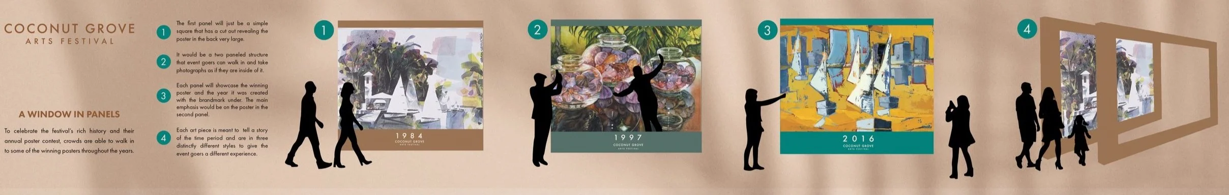 Each panel will showcase the winning poster and the year it was created with the brandmark under.